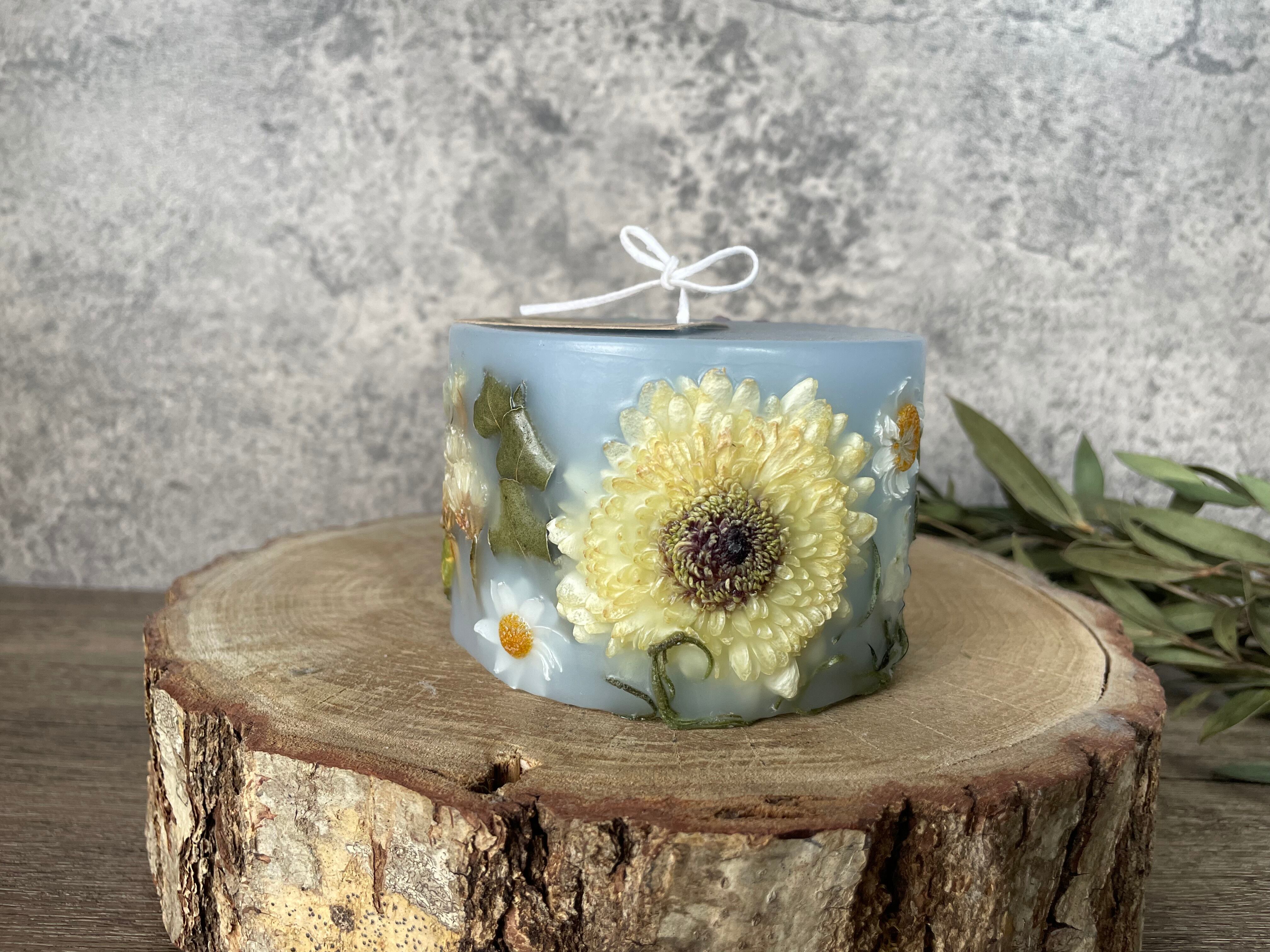 生花をドライフラワーに加工し、キャンドルの中に美しく詰め込みました。灯すと内側から優しい光が溢れ出し、お部屋を温もりで包み込みます。