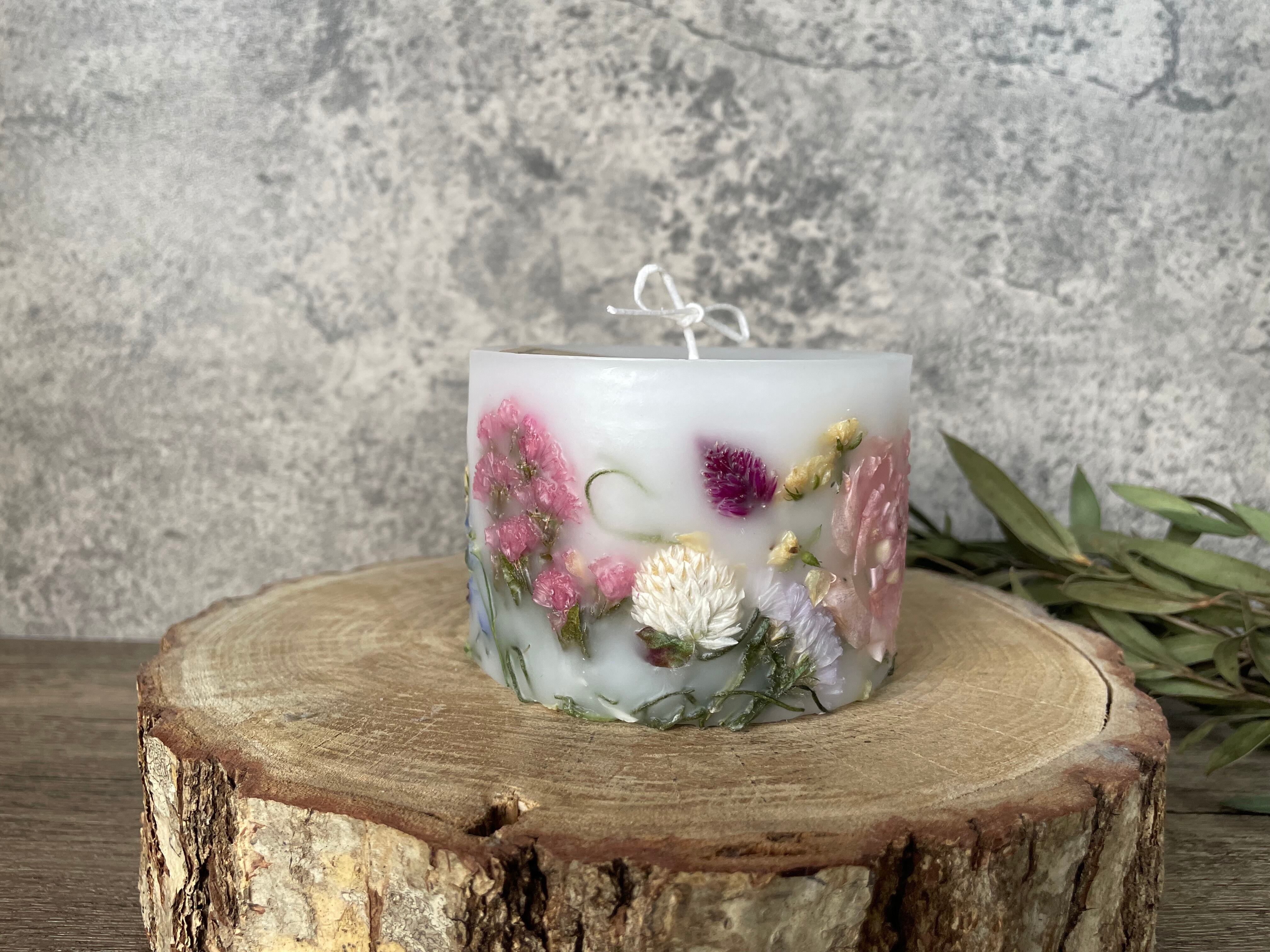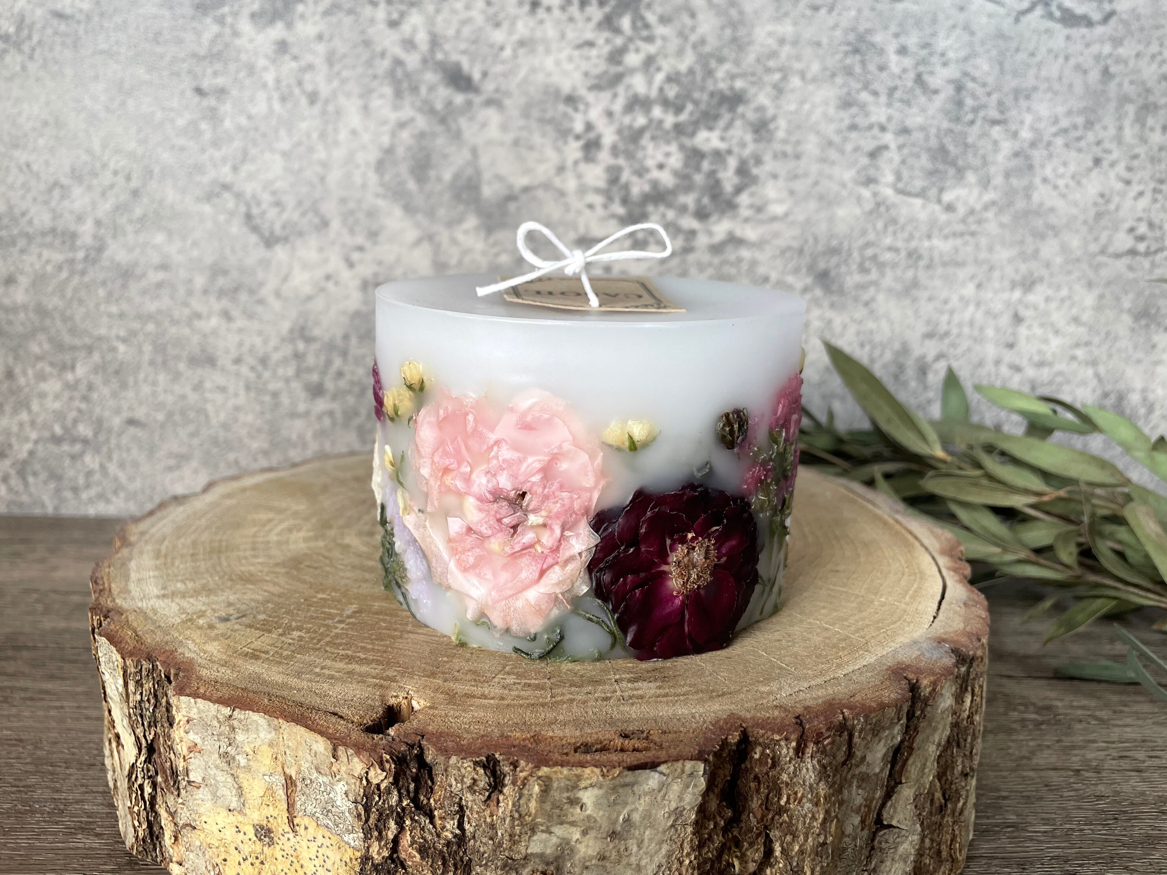 生花をドライフラワーに加工し、キャンドルの中に美しく詰め込みました。灯すと内側から優しい光が溢れ出し、お部屋を温もりで包み込みます。