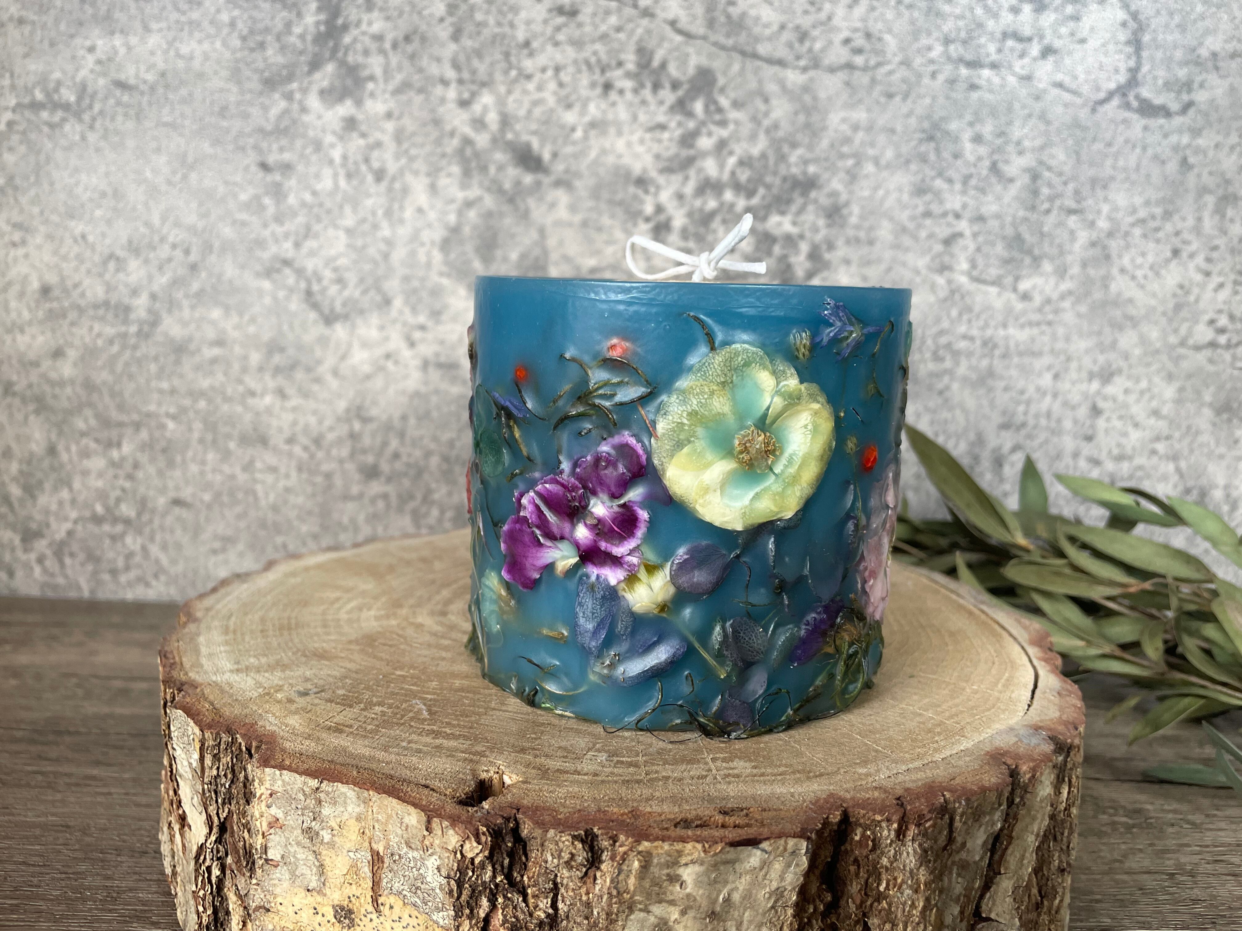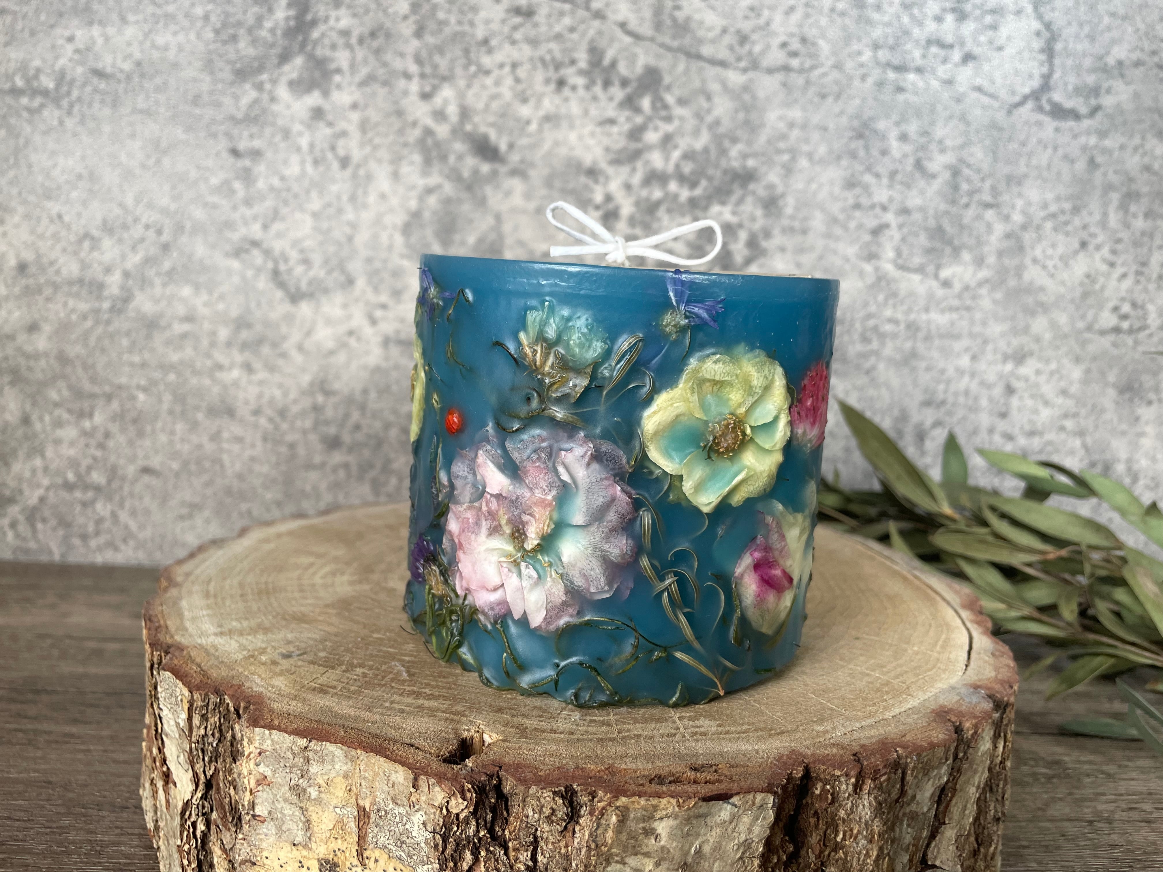 生花をドライフラワーに加工し、キャンドルの中に美しく詰め込みました。灯すと内側から優しい光が溢れ出し、お部屋を温もりで包み込みます。